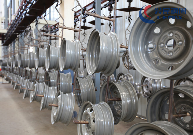Xingmin paint workshops possess state of painting line. The line utilizes the tatest technology in the pretreatment of electrophoresis. The anticorrosion performance conforms to the international standards. Xingmin is the first wheel company in China to use a chain conveyor line for electrostatic powder coating, which makes coating automatic. Robotic arms load and unload product on the conveyor line. The finished products go directly to the warehouse for packing, which eliminates possible wear and tear.