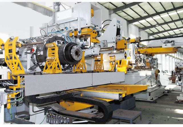 輪輻車間加工設(shè)備齊全,擁有:YB32—315~1600噸液壓機(jī)共有50余臺(tái)套,100噸到800噸沖床160余臺(tái)套,日生產(chǎn)能力達(dá)到2.6萬(wàn)件。輪輻沖通風(fēng)孔工序,采用國(guó)內(nèi)先進(jìn)技術(shù),配套安裝了PLC控制的自動(dòng)分度裝置,全部實(shí)現(xiàn)自動(dòng)控制。輪輻加工工序,采用國(guó)內(nèi)先進(jìn)的數(shù)控立式車床,此設(shè)備選用日本FANUC的控制系統(tǒng),所加工輪輻的各方面的技術(shù)指標(biāo)都優(yōu)于我國(guó)的相關(guān)標(biāo)準(zhǔn),使產(chǎn)品遠(yuǎn)銷歐美許多國(guó)家。