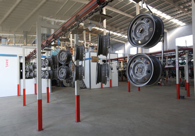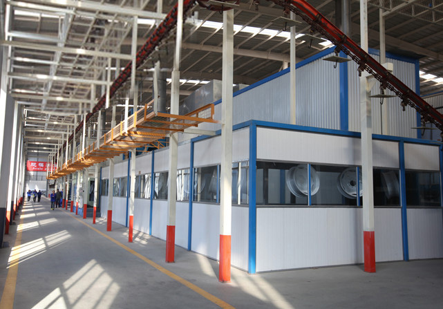 興民涂裝車間具備國(guó)內(nèi)外鋼制車輪涂裝線的工藝水平,其中前處理電泳線采用國(guó)際先進(jìn)工藝,產(chǎn)品防腐性能達(dá)國(guó)際標(biāo)準(zhǔn)。面漆噴涂線采用地面鏈輸送工件方式,靜電粉末噴涂工藝,實(shí)現(xiàn)產(chǎn)品自動(dòng)化噴涂。整個(gè)涂裝車間全部采用機(jī)器人進(jìn)行工件轉(zhuǎn)序,產(chǎn)品直接進(jìn)入庫(kù)房碼垛打包,避免了中間環(huán)節(jié)對(duì)產(chǎn)品的損害。